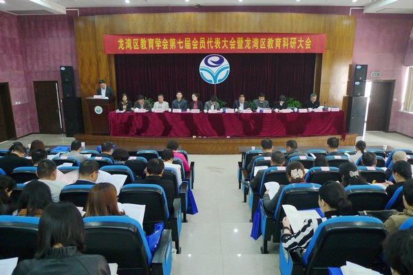 区政府督导室黄丽秋副主任宣布大会开始,会议在庄严的国歌中拉开了序幕。市教育学会副秘书长、市教学研究院副院长马玉斌为大会召开致辞。全体会员代表审议表决了第六届学会常务副会长王学朝所作的“工作报告”、“财务报告”。表决通过了“选举办法”。选举产生了龙湾区教育学会第七届理事102名、常务理事39名、会长1名,常务副会长1名,副会长5名,秘书长1名,副秘书长1名。大会还表彰了龙湾区“十一五”期间优秀科研成果个人和先进集体。 新当选的会长、龙湾区教育局长、书记梅银松作“科研引领,为率先实现龙湾区教育现代化服务”专题报告。报告回顾了“十一五”以来我区教育科研的成就,分析当前教育科研存在问题,提出“十二五”未来几年新一届学会工作和教育科研工作的目标、任务、要求。