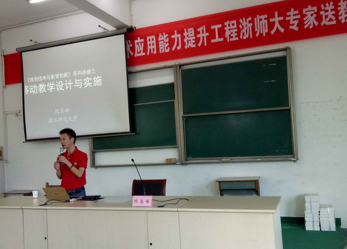 上午五十几位相关老师认真听取了浙师大阮高峰教授的《移动教学的技术设计与实施》专题讲座,阮教授用生动形象的课例讲述了移动演示型教学设计与应用、移动学习资源制作基础以及移动社会型学习规划与实施等三个方面的内容,让老师们在轻松愉悦的氛围中见识到手机与投影仪的神奇链接给课堂教学带来的彻底翻转,领略到移动教学模式的魅力,充分感受到未来教育的信息化力量。