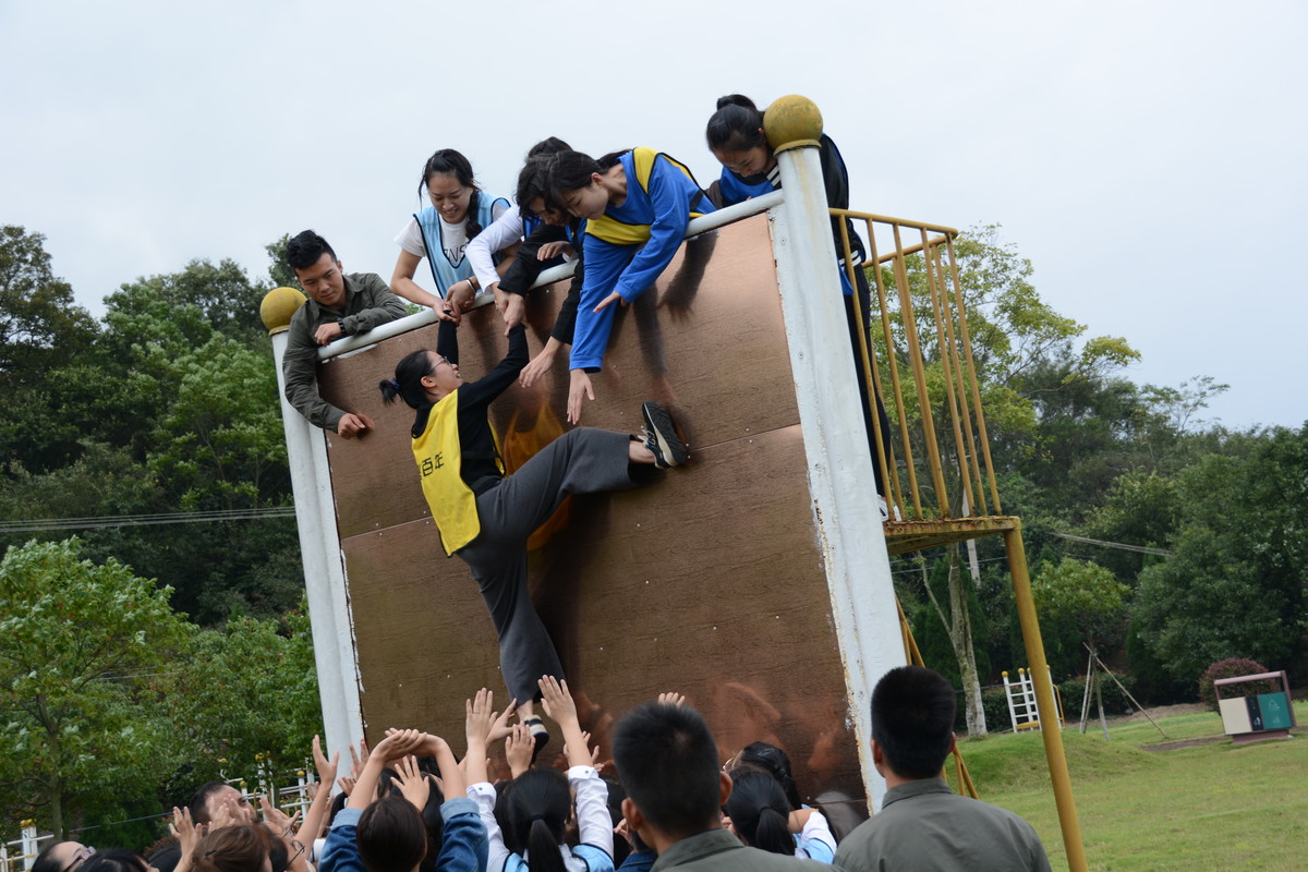 近日,在温岭市素质教育实践基地,2016级50位幼儿园新教师参加了以“团结奋进、共同提高”为主题的自身素质提高拓展训练活动。