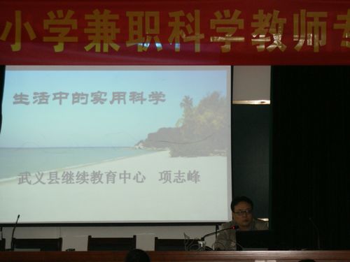 为拓展兼职科学教师的知识结构,本次培训邀请金华市优秀培训师、中学高级教师项志峰作营养科学、食品安全常识等生活中的实用科学方面的讲座。项老师曾多次指导学生获省青少年科技创新大赛的一、二等奖,并指导学生们的小发明获得两项国家专利。项老师的讲座实用性强,生动幽默,并与学员积极互动,使大家受益良多。