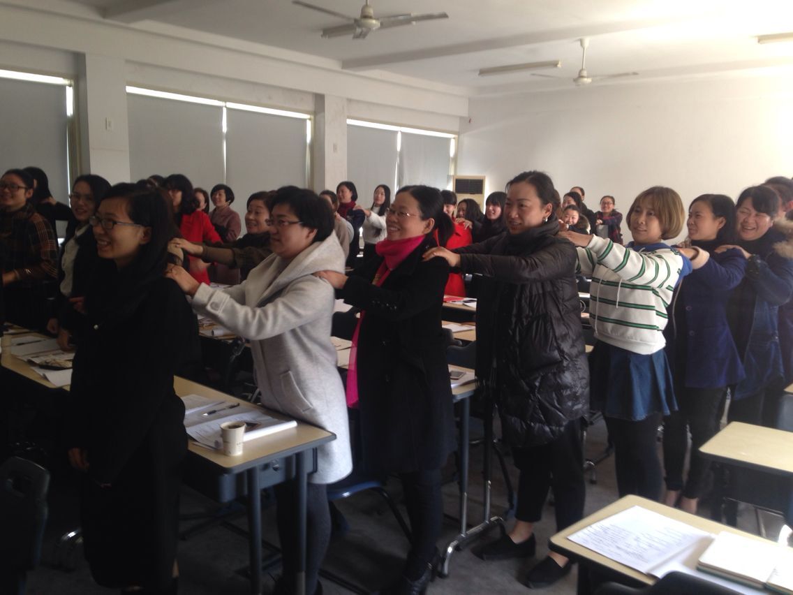 CLASS)。CLASS评估系统关注对师幼互动的动态过程的考察,主要从情感支持、班级管理和教育支持三大领域、十大维度进行评定,具有很强的操作性。韩教授在这两天时间里,非常全面系统地为大家讲解了CLASS评估系统中三个领域中的10个维度,42个指标和123个行为标记。她利用了大量的案例来解释说明如何从具体维度评估幼儿与教师的互动的质量。她还利用国外幼儿园中的视频片段以及各种幼儿园实践案例让大家进行师幼互动的分析,促进幼儿园教师直接应用理论知识于教学实践。