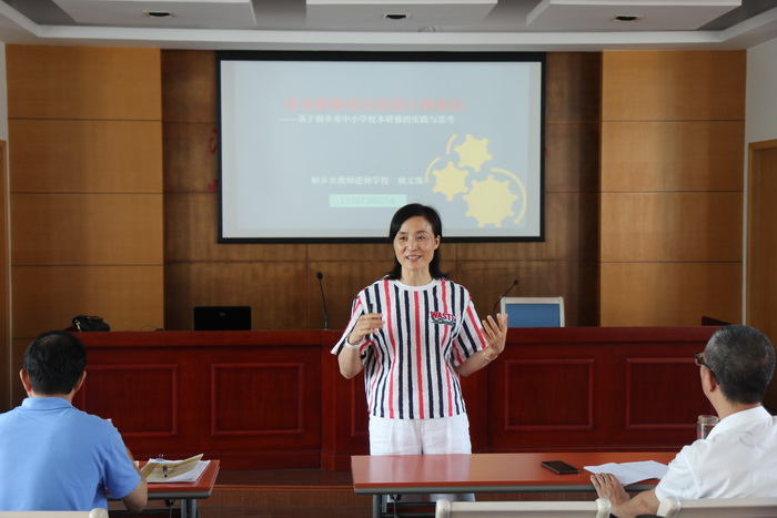 为更好的服务全市各校的校本研修,取长培优,6月7日上午,嵊州市教师进修学校特邀桐乡市教师进修学校副校长姚文珠老师给本校全体教师做有关校本研修的专题讲座,并开展互动交流。作为浙江省校本培训先进县市的优秀代表,长期负责、从事该市校本研修工作的姚文珠老师化了两个小时的时间与嵊州同行分享了《校本研修项目的设计和优化——基于桐乡市中小学校本研修的实践与思考》的校本研修经验。她从“我们的校本研修管理”、“关于校本研修项目设计”、“关于校本研修项目优化”三个模块加以阐述,专业的语言描述,特色鲜明、实用、操作性强的校本研修内容,善用信息技术手段的研修方式,基于桐乡实际的案例佐证,无不印证了桐乡市各校是“走向专业的校本研修,让每一个教师可持续发展”校本研修理念。