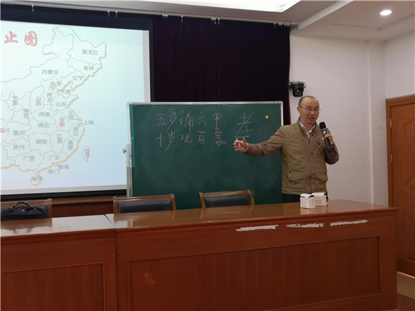 湖州师范学院潘明福老师用《李白、杜甫的人生情怀与诗歌风采》的精彩讲座,带领大家穿越时空回到唐朝,在一首首经典古诗中领略李白与杜甫两位大家的诗歌风采,在一个个小故事中感悟他们的人生情怀。潘老师用一份简单的课件,一块黑板和一支粉笔,为学员们淋漓精致演绎了中国传统的诗词文化。