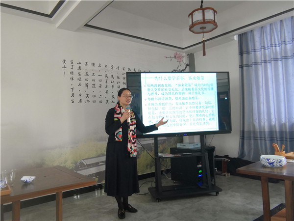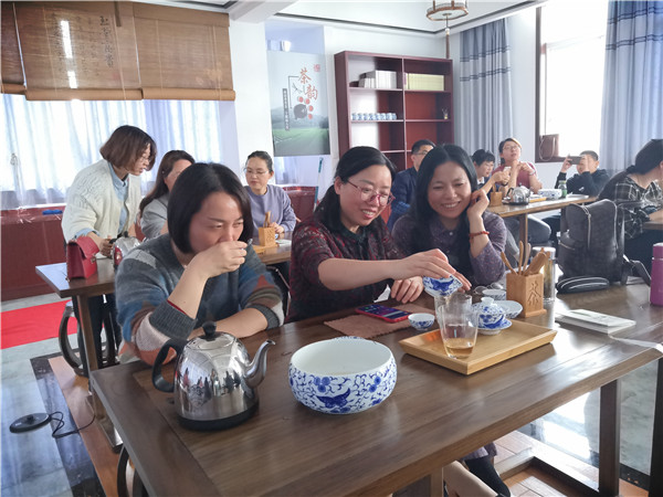在长兴县文联主席、县委宣传部副部长刘月琴的《老师也要学茶事》讲座中,学员们认识茶具,了解各种茶的特点与制作方法,在泡茶、品茶、诵读茶的诗词中,感受中国茶文化的源远流长,更是对家乡长兴紫笋茶的历史有了新的认识。