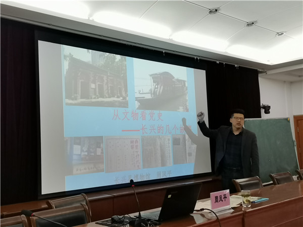 正值建党百年之际,长兴县博物馆副馆长周凤平结合长兴当地的历史文物,给大家带来了《从文物看党史——长兴的几个故事》主题讲座,引领全体学员重温长兴的历史与发展。涌现在长兴土地上的一个个革命志士的英雄事迹,给学员带来了一次精神的洗礼。